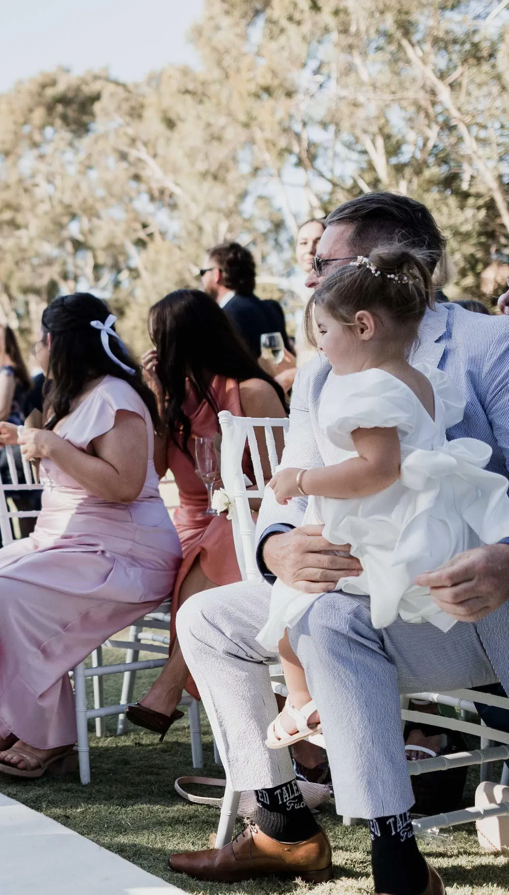 A common question we receive is in regards to our dresses being called "ivory" rather than "white". Although to the naked eye most would say they are white (and they photograph as white), we choose to call them ivory so there is no confusion for brides looking for stark white flower girl dresses.